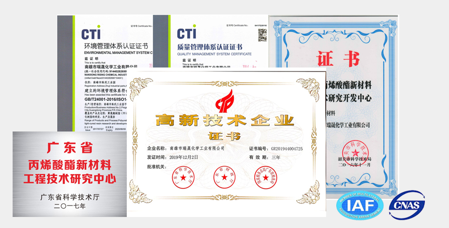 瑞晟新材料,成立于2005年,系專業(yè)從事綠色環(huán)保材料研發(fā),生產(chǎn)和銷售的高科技企業(yè)。主要產(chǎn)品包括水性UV樹脂,聚氨酯丙烯酸酯、改性環(huán)氧丙烯酸酯、丙烯酸樹脂,特殊改性聚酯樹脂以及其他特殊新材料等,年產(chǎn)量可達一萬噸。產(chǎn)品用途廣泛,涉獵眾多,主要應(yīng)用于智能家電、智能穿戴、智能家居,汽車內(nèi)外飾,工程機械等。占地50畝,是專業(yè)從事新材料研發(fā)、生產(chǎn)和銷售的國家高新技術(shù)企業(yè)和廣東省專精特新中小企業(yè)。主要產(chǎn)品包括水性UV樹脂、聚氨酯丙烯酸酯、丙烯酸樹脂、聚酯樹脂、無機納米水性陶瓷樹脂以及其他特殊新材料等,年產(chǎn)量可達一萬噸。產(chǎn)品用途廣泛,符合當前環(huán)保要求。涉及產(chǎn)業(yè)眾多,主要應(yīng)用于:3C(手機、筆記本電腦等)、汽車內(nèi)飾、家電家具、工程機械、市政工程等。